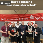 Mit einem 2:1 Erfolg über Teamkollege Max Gottschalk sicherte sich Michael Kaus (Gallus Frankfurt) zum 5ten Mal den Titel „Norddeutscher Einzelmeister“ – herzlichen Glückwunsch.