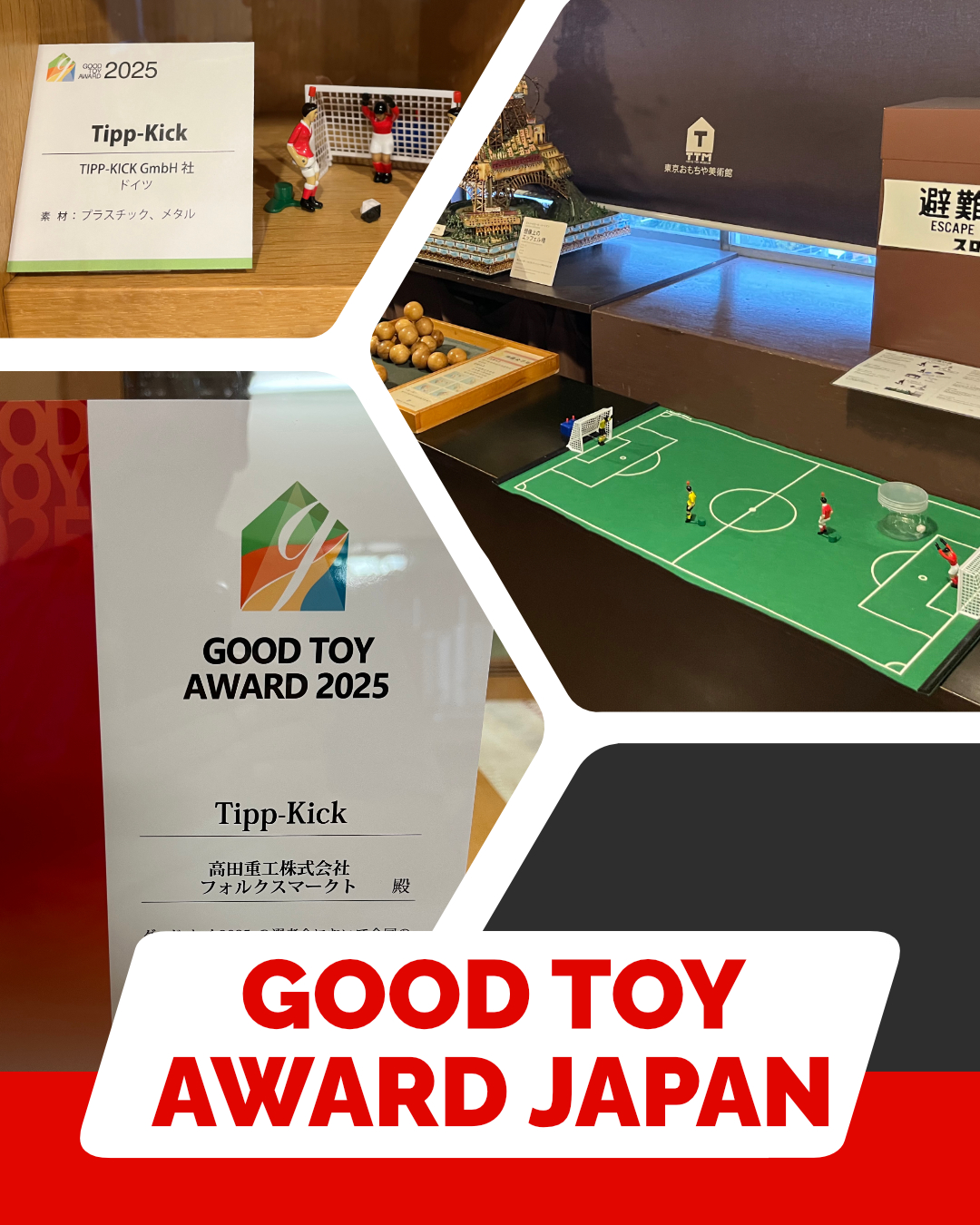 Das Tipp-Kick-Spiel erhält in Japan den Good Toy Award 2025. Die gemeinnützige Organisation „Art and Play Creation Association“ vergibt diesen Preis jedes Jahr den besten Spielzeugen. Tipp-Kick-Spiele können in Japan seit 2015 erworben werden.