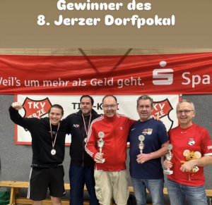 Beim Jerzer Dorfpokal waren 47 Teilnehmer am Start. Am Ende setzte sich Knut Asmis (Spandauer Filzteufel) gegen den Lokalmatador Markus Schnetzke (TKV Jerze) mit 6:4 Toren durch. Herzlichen Glückwunsch an den Berliner.